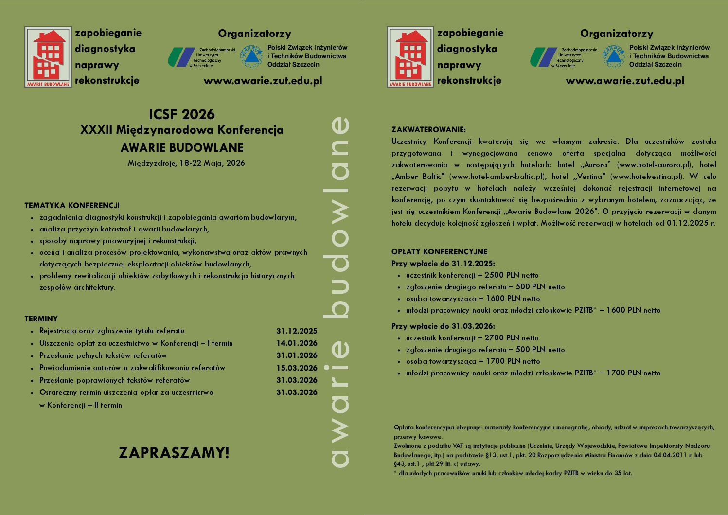 Czytaj dalej: artykuł „Proces budowlany oraz utrzymanie obiektów budowlanych w kontekście obowiązujących oraz projektowanych zmian ustawy Prawo budowlane i aktów wykonawczych, w tym zmian obowiązujących od 2026 r. Wybrane zagadnienia”. Bydgoszcz 18.02.2026 rXXXII Konferencji Naukowo -Technicznej „Awarie Budowlane” 18-22 maja 2026 roku w Międzyzdrojach.